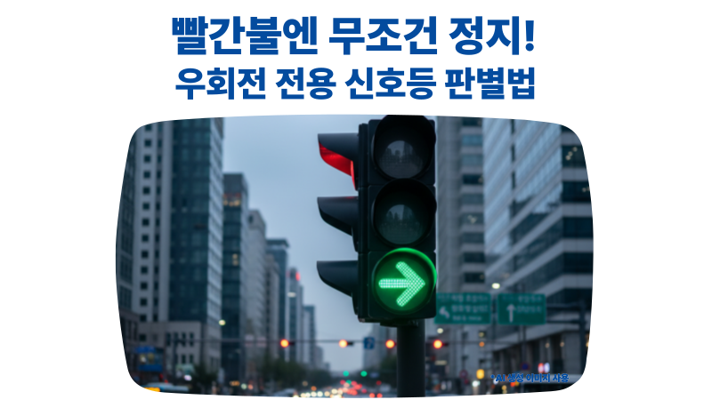 - 우회전 전용 신호등이 있는 경우: 최근 설치가 늘고 있는 화살표 신호등입니다. 이때는 우회전 신호등에 녹색 화살표가 들어왔을 때만 통행할 수 있습니다. 적색 화살표거나 불이 꺼져 있다면 보행자 유무와 관계없이 대기해야 하며, 이를 위반하면 일반 신호위반으로 간주합니다.