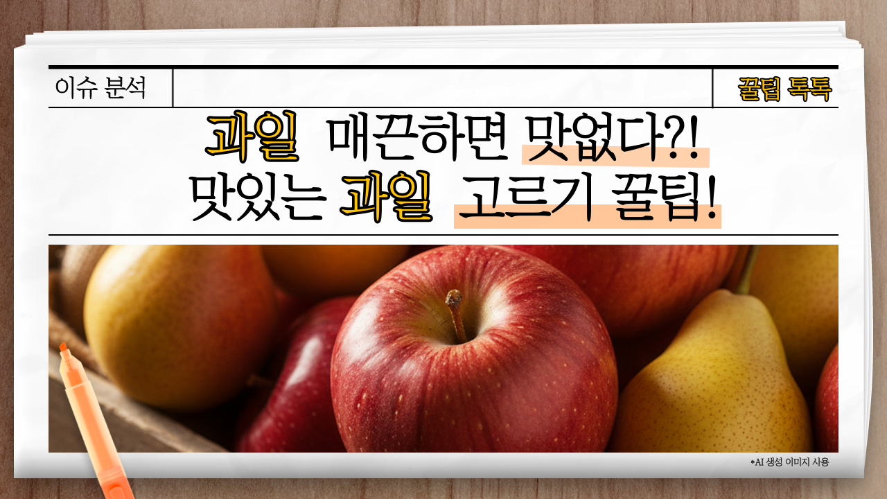 꿀팁톡톡이 오늘 여러분의 장바구니를 알차게 채워줄 고당도 과일 선별 비법을 정리해 드립니다. 사과 표면의 거친 질감부터 배의 묵직한 무게감까지, 실패 없는 과일 쇼핑을 위한 핵심만 짚어 드릴게요!