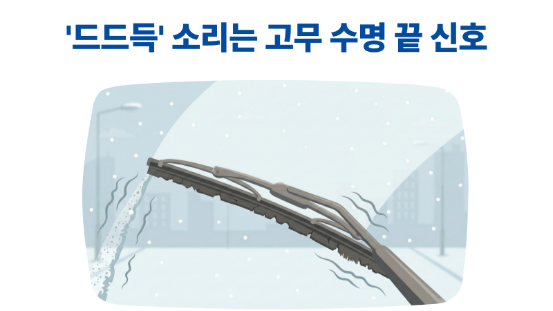 - A. 고무 수명이 다한 것입니다. 추운 날씨엔 고무가 딱딱하게 경화되어 유리에 밀착되지 않고 튀면서 소음이 발생합니다. 이는 잘 닦이지 않을뿐더러 유리에 기스를 낼 수 있으므로, 겨울철 전용 와이퍼나 새 고무로 교체해 주는 것이 좋습니다.